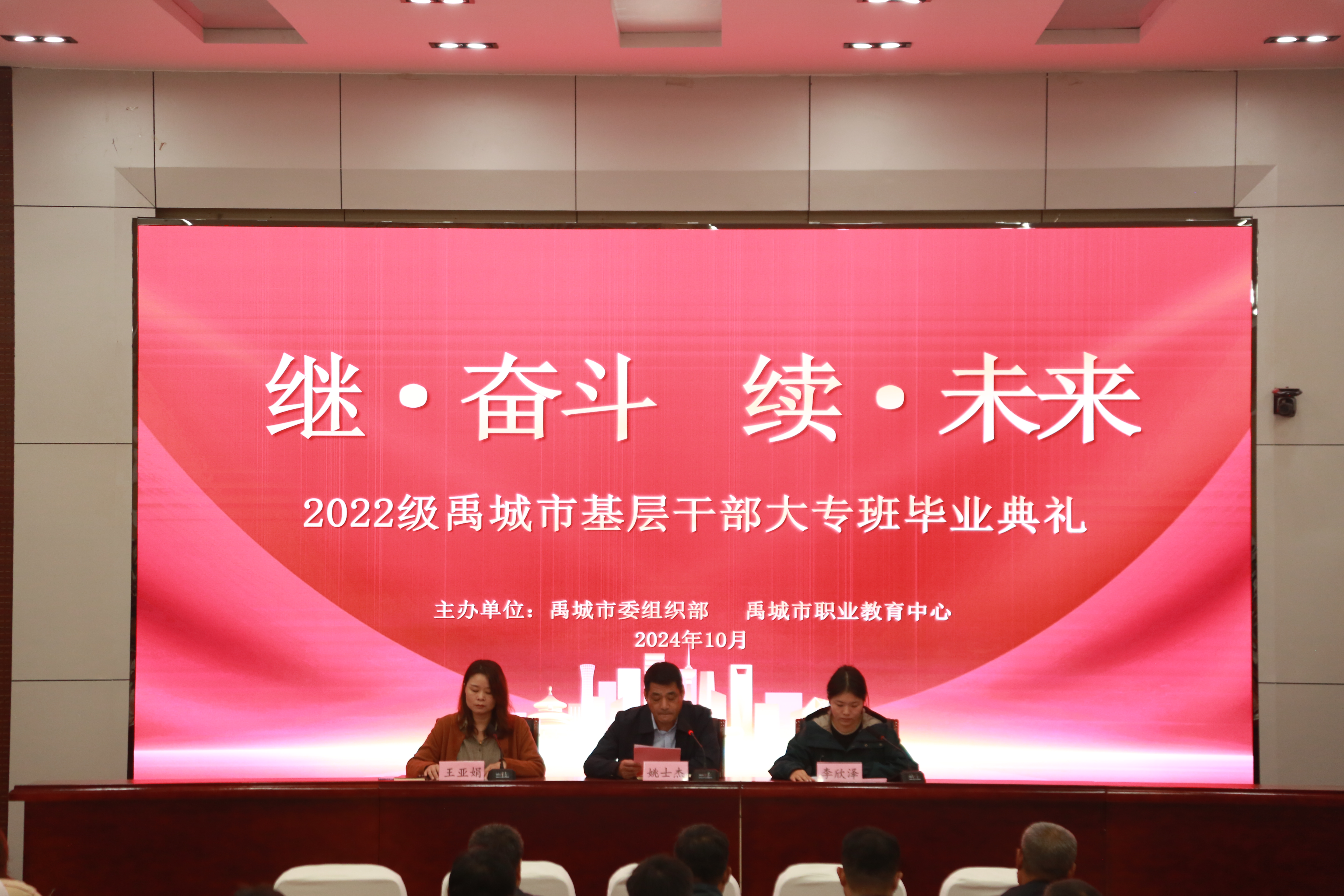 10月17日上午,2022级禹城市基层干部学历提升大专班毕业典礼,在市职业教育中心圆满举行。