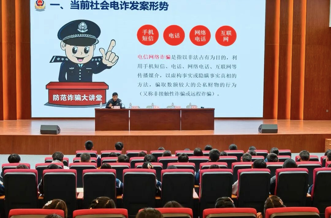 讲座中,叶小舟警官结合当前电信网络诈骗高发态势,以“守护青春安全”为核心展开讲解。他通过禹城本地真实案例,生动拆解“手机口”“诈骗引流”等新型骗局的作案手法,着重提醒同学们:快递袋、小卡片上的陌生二维码切勿随意扫描,网络交友需警惕“网恋诈骗”陷阱。同时,叶警官还详细演示了遭遇诈骗后,如何第一时间保留证据、拨打110报警等正确应对步骤,实用性极强。